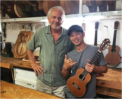 Being more of a guitar player than a violin or mandolin player, he found that his interests were leaning more toward guitar construction, and in 1974 he began making acoustic arch top guitars and expanded to flat top guitars in 1982. This was also the year he moved his to its present location in Kula, Hawaii. At approximately 4,000 feet elevation on the dry, leeward slopes of Mt. Haleakala, he found the perfect location to build instruments.